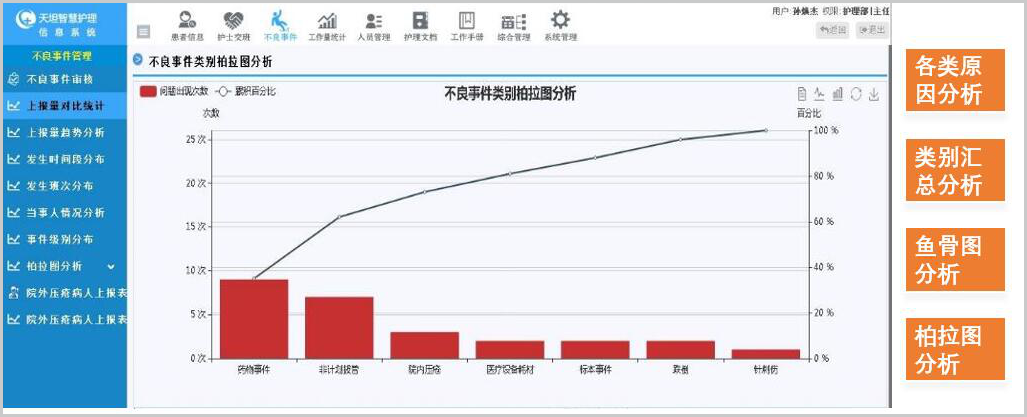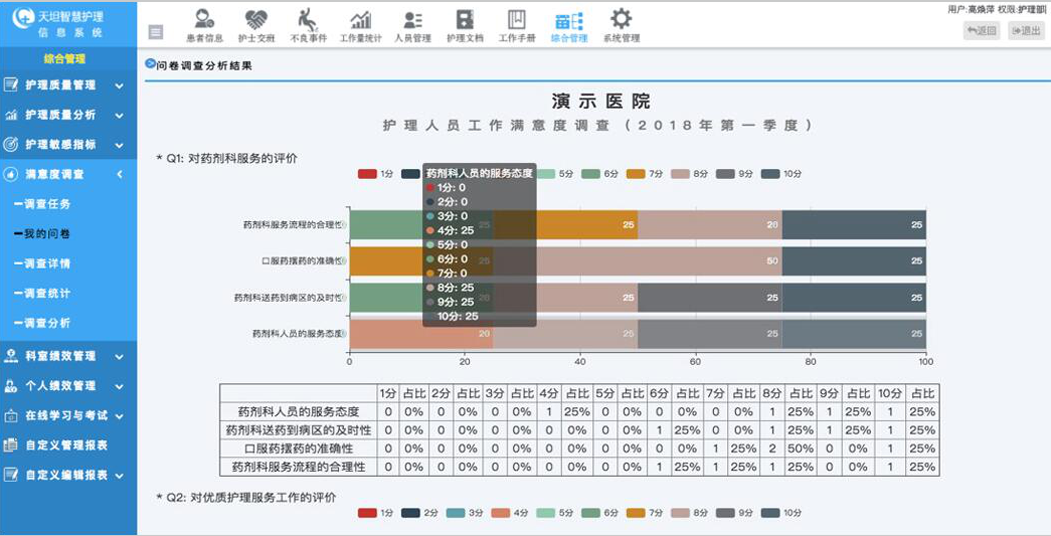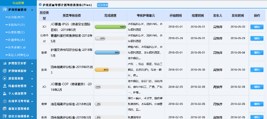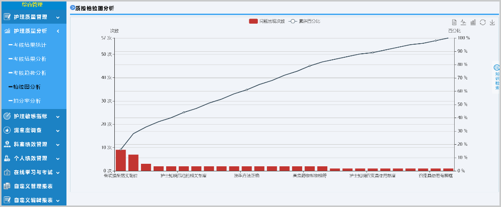 針對護理質量管理重點,支持自定義質控表單,使用評分、扣分等多種考核方式,電子化護理質量考核、持續(xù)跟蹤記錄,并可以用于統(tǒng)計分析。