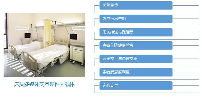 患者住院信息服務(wù)系統(tǒng),是利用4G/5G專網(wǎng)或院內(nèi)WIFI搭建的軟硬件一體化床旁系統(tǒng),以智能平板+便攜支架為硬件載體,為患者提供全方位住院信息服務(wù),可以有效提高醫(yī)護(hù)患溝通效率,在降低患者與醫(yī)護(hù)人員的接觸次數(shù)的同時更可以提高患者住院服務(wù)感受,提高診療依從性、緩解住院焦慮感,尤其適合隔離病房使用。