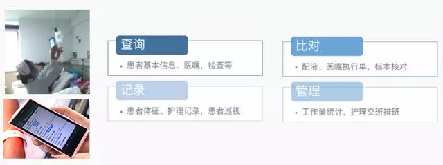 醫(yī)院的護(hù)士在日常操作中,每個環(huán)節(jié)都通過移動護(hù)士去記錄。在此過程中,移動護(hù)士會將護(hù)士的記錄工作,加上一些系統(tǒng)限制。如護(hù)士檢查患者的輸液信息,現(xiàn)階段大多是通過人工去核對,而使用移動護(hù)士,可以直接掃碼核對。同時,移動護(hù)士會強(qiáng)制要求患者的輸液瓶簽和患者腕帶之間一一對應(yīng),這就相當(dāng)于增加了一個自動化的識別判斷,讓更換過程又快又準(zhǔn)。