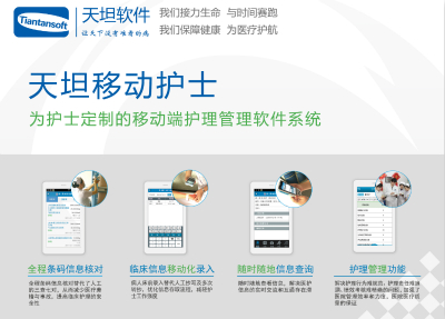 除了卒中綠色通道之外,天坦軟件在大會(huì)上還展出了移動(dòng)醫(yī)護(hù)產(chǎn)品,主要涉及天坦移動(dòng)醫(yī)生和天坦移動(dòng)護(hù)士。天坦移動(dòng)醫(yī)生是專門(mén)為醫(yī)生定制的移動(dòng)查房系統(tǒng),具有智能查房,協(xié)同醫(yī)療、智能輔助等特點(diǎn),是隨時(shí)隨地的病歷夾;天坦移動(dòng)護(hù)士是專門(mén)為護(hù)士定制的移動(dòng)護(hù)理系統(tǒng),支持全程條碼信息核對(duì),臨床信息移動(dòng)化錄入,隨時(shí)隨地信息查詢以及護(hù)理管理等。