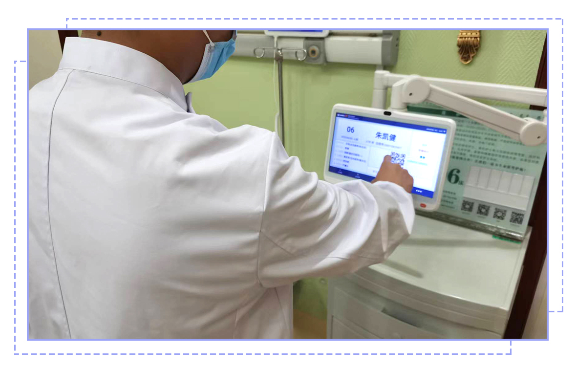 患者床頭屏是一個電子化的床頭卡,它結(jié)合了傳統(tǒng)的床頭呼叫器,患者需要幫助時可一鍵呼叫,并且它還可以實(shí)時更新患者數(shù)據(jù)顯示,有了它護(hù)士每日可快速完成三查七對的護(hù)理工作。