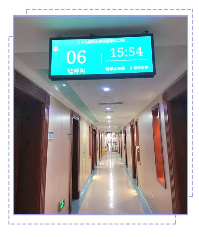 通過病房智能門口屏可了解患者的責(zé)任醫(yī)護(hù),并在患者發(fā)起呼叫時長亮彩燈,提升護(hù)士響應(yīng)效率。