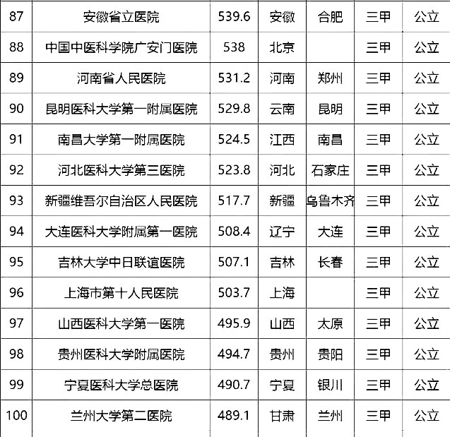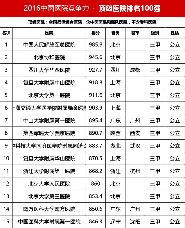 2016中國(guó)頂級(jí)醫(yī)院100強(qiáng)榜單出爐
