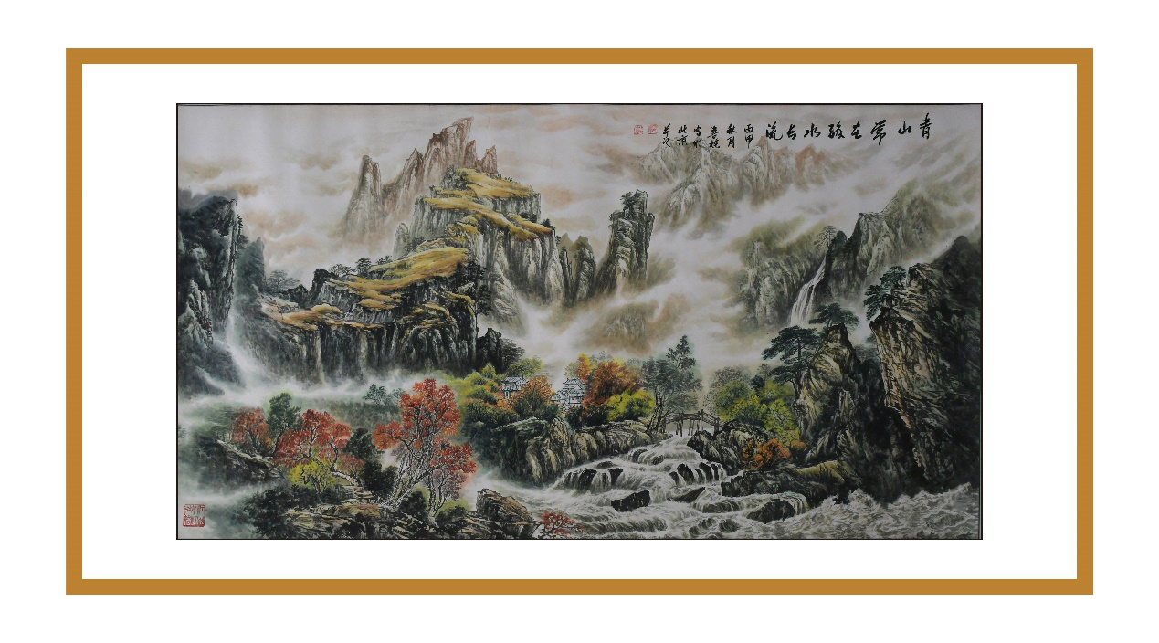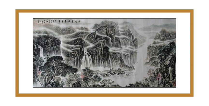 欣賞譚老的畫作,使人有一種難以言表的美感,問及原因,他說:“為了研究山水,我閱讀了大量古、今書籍,我發(fā)現(xiàn)歷朝歷代對山水國畫都相當重視,山水被視為鎮(zhèn)宅的代名詞,一直以來在帝王家它都是以圖騰的形式存在的。”但為了能夠更好地傳承歷史文化,他鉆研國學(xué),將儒、釋、道的精髓理念及思想融入到作品中,追求創(chuàng)造的是一種“和合”之感,讓這大氣之圖騰成為真正意義上的圖騰。